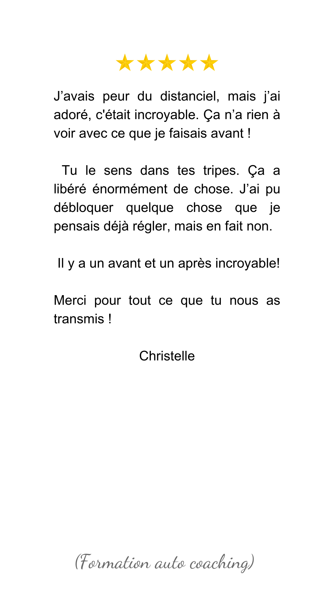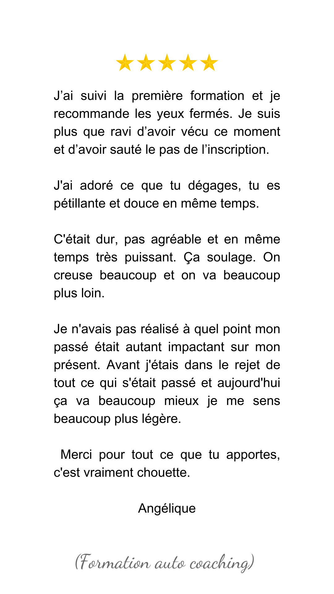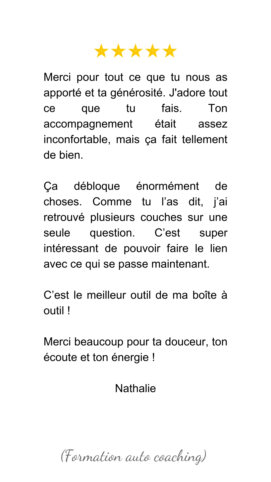 Si tu souhaites accompagner les autres et faire du coaching ton métier, cette formation complète te guide pas à pas pour devenir un coach d’excellence. Apprends à utiliser ma méthode, à te connecter à ton intuition, et à accompagner les autres dans leur transformation.