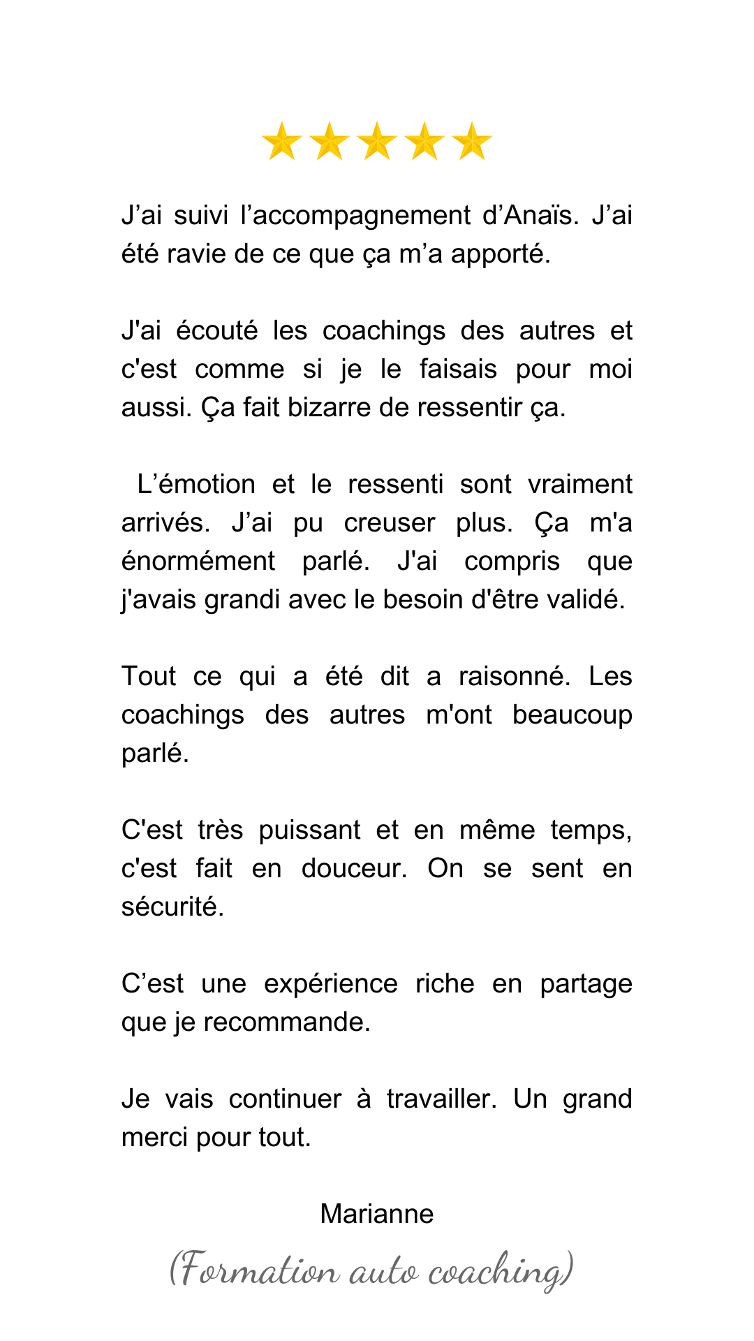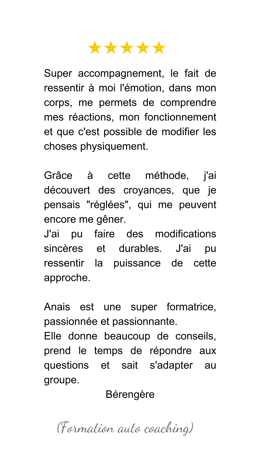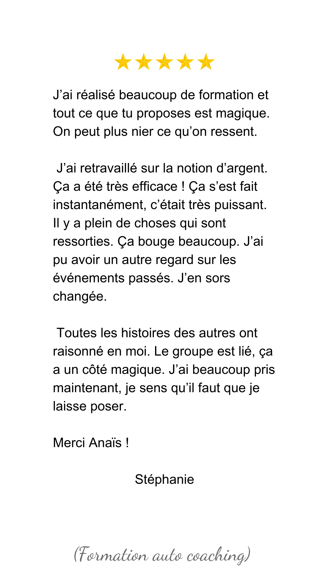 Si tu souhaites accompagner les autres et faire du coaching ton métier, cette formation complète te guide pas à pas pour devenir un coach d’excellence. Apprends à utiliser ma méthode, à te connecter à ton intuition, et à accompagner les autres dans leur transformation.