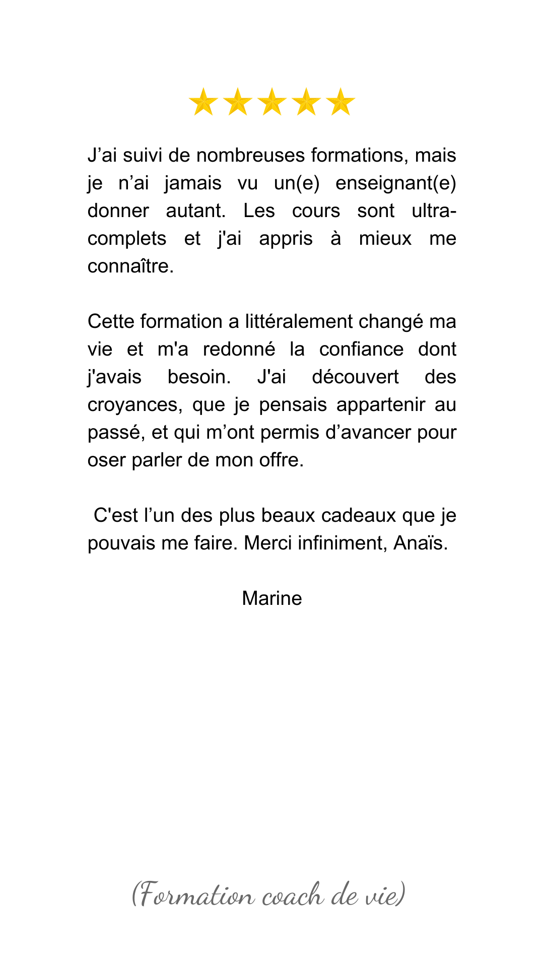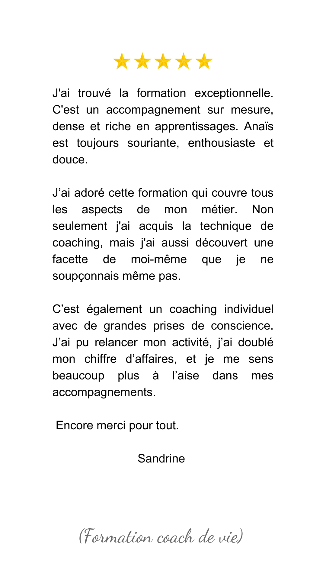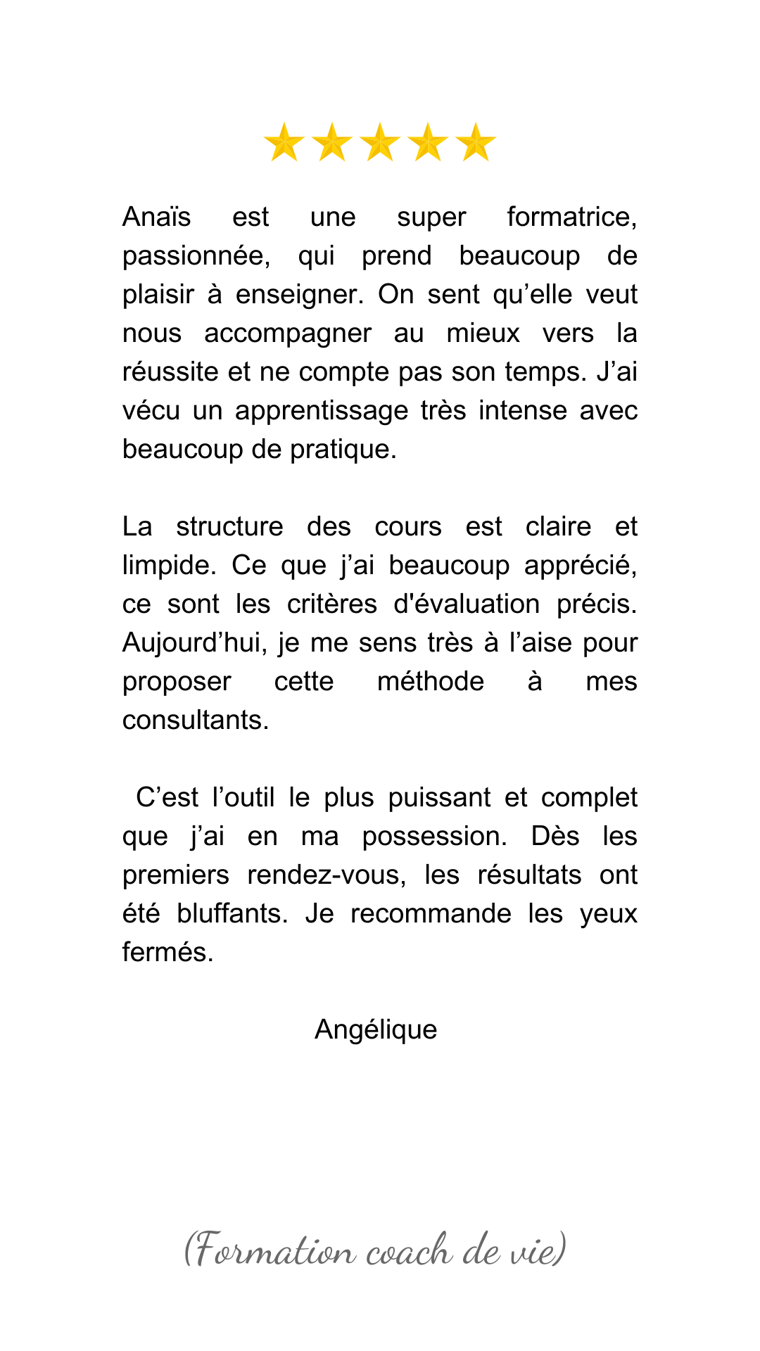 - Formation sur 8 mois (d’octobre à juin) : Sessions en direct ou en replay, coaching pratique, accompagnement marketing, et suivi individuel pour t’aider à trouver tes premiers clients.